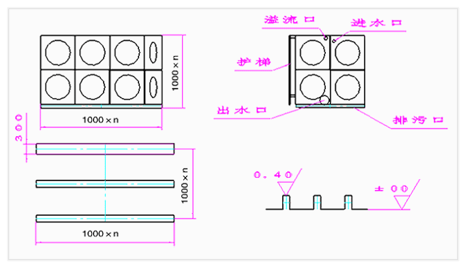 /PRODUCTS玻璃鋼組合水箱 1、水箱墻板參照國家標準生產(chǎn),表面采用進口膠衣樹脂,日久光亮如新,F(xiàn)RP(玻璃鋼),主要原材料來自英、美、法等國家,使玻璃鋼外殼具有良好的鋼性,耐老化,永不褪色之特點。 2、金屬結(jié)構(gòu)采用熱鍍鋅處理,外加二層氯化橡膠漆,故大大提高了金屬構(gòu)件的防腐能力,提高了使用壽命。 3、外形尺寸根據(jù)用戶的要求設(shè)計,依1000×1000,1000×500兩種模塊來拼裝生產(chǎn)。 4、可根據(jù)用戶要求整體組裝或現(xiàn)場安裝。 5、進水口、出水口、補充水口、排污口可根據(jù)用戶要求設(shè)計。 |